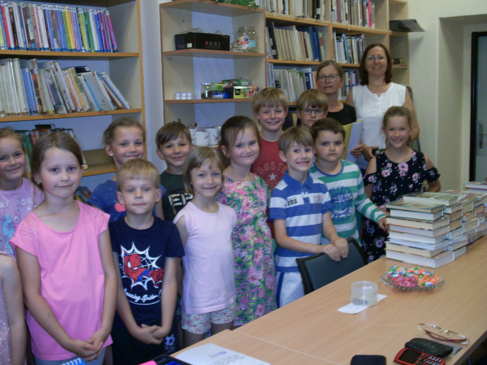 Ve čtvrtek 27. 6. se přišli školáci před prázdninami rozloučit s knihovnou. Chybět tu budou hlavně třeťáci, kteří odcházejí na jiné školy. Jsou to šikovní čtenáři, určitě si cestu ke knížkám najdou i dál. Děkuju za kytičku a krásný obrázek školy se všemi dětmi a přeju všem krásné prázdniny!