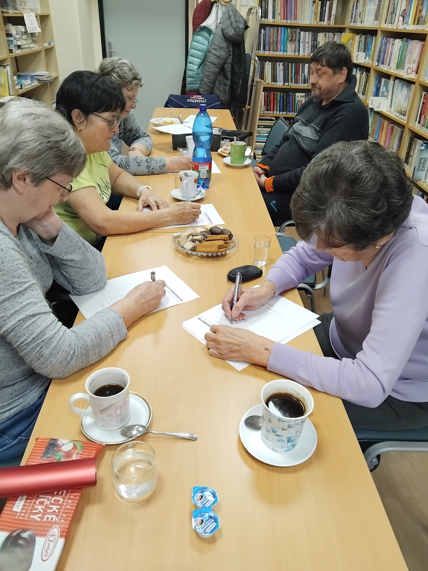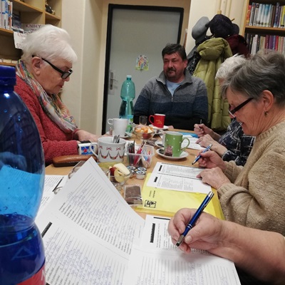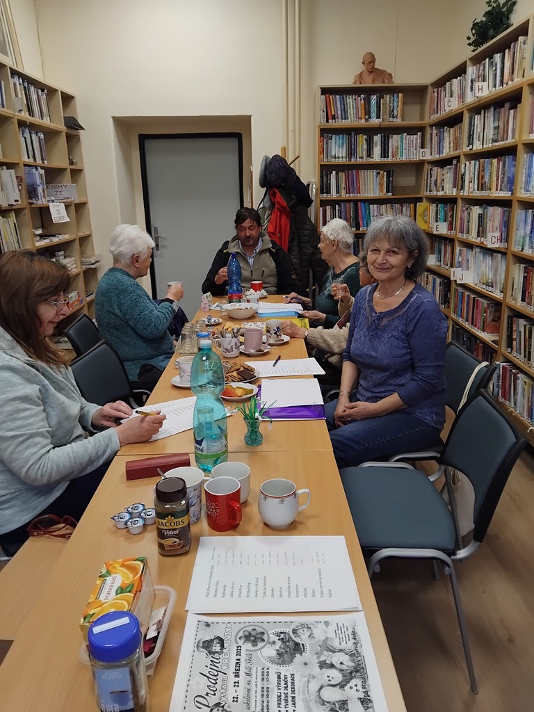 Na první lekci Hrátek s pamětí s lektorem panem Chourou se v knihovně 18. února sešlo šest odvážných účastnic, přítomna byla i paní Kmošťáková ze spolku MAS Achát, který pro nás tuto komunitní aktivitu pořádá a financuje. Potrénovaly jsme paměť a mozkové závity a ještě u toho bylo veselo.