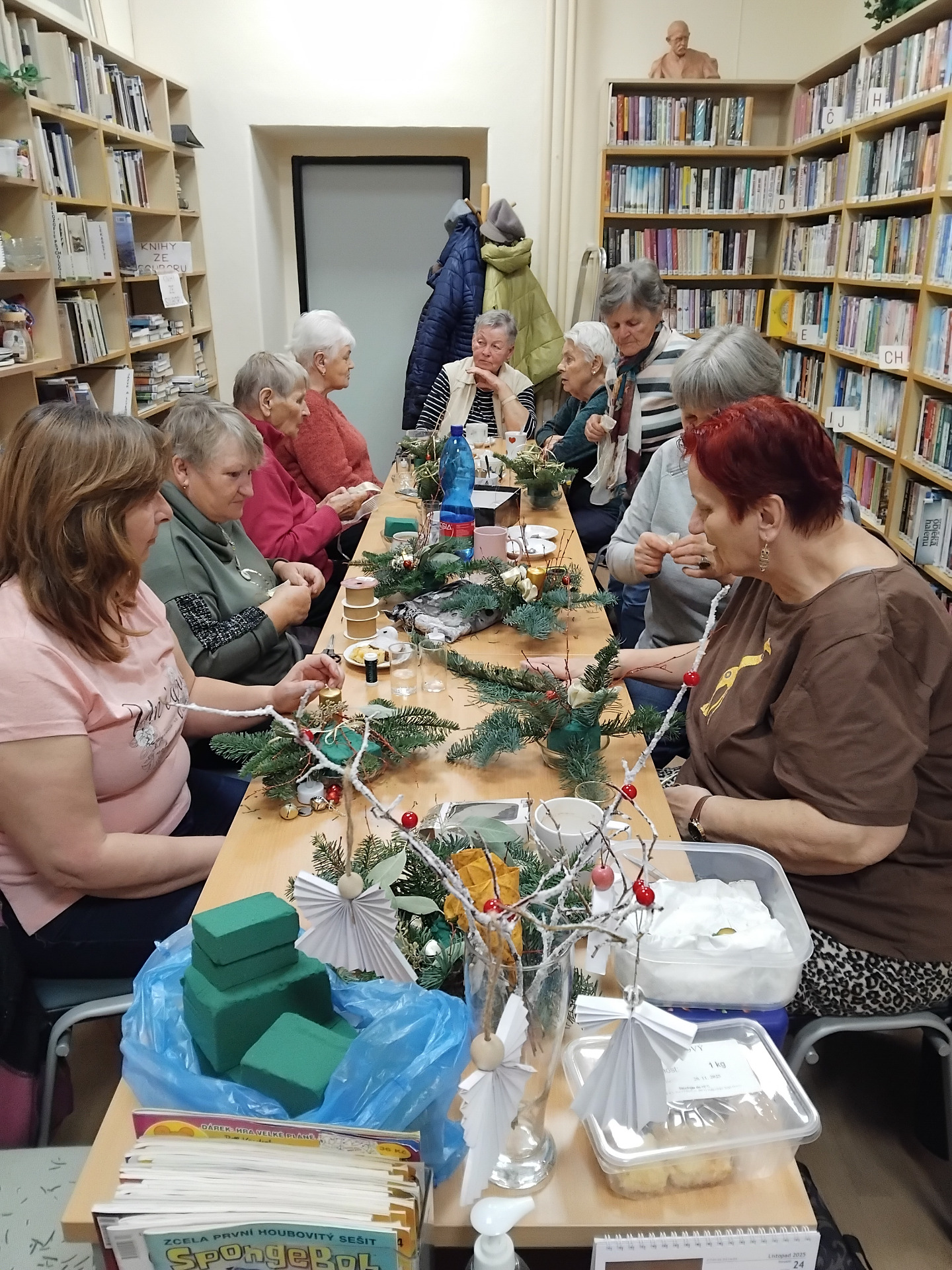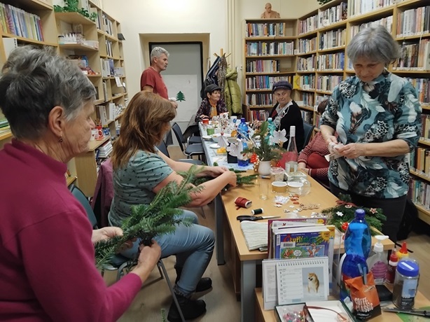 V pondělí 9. prosince odpoledne jsme se v knihovně sešli na předvánočním "babinci", tentokrát ne doslova, protože mezi nás zavítal i jeden muž, který šaramantně bavil přítomné dámy. Bylo to milé sváteční setkání s konzumací přinesených dobrot a tvořivou dílničkou.