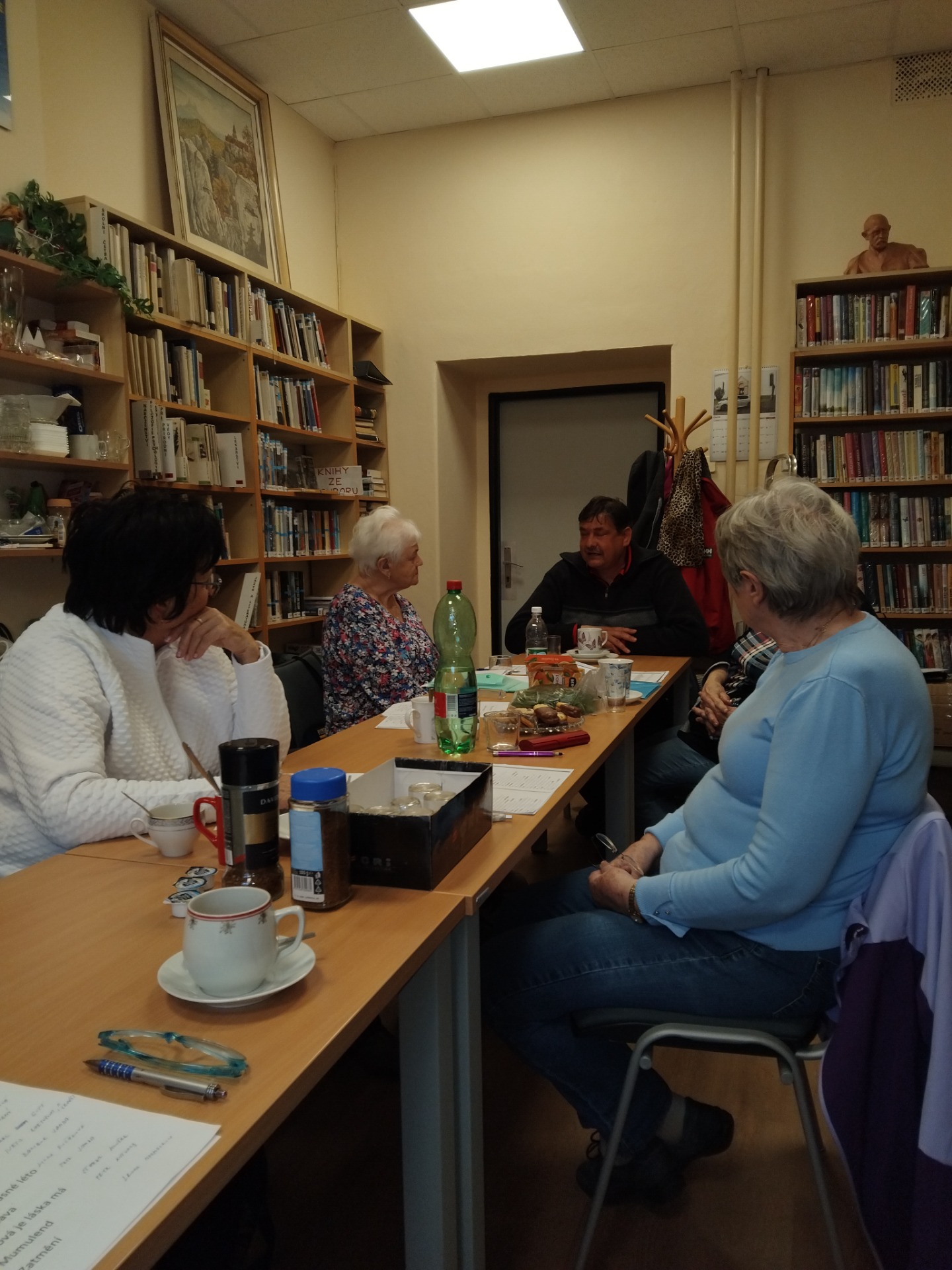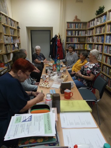 Říjnový "babinec" - v pondělí 7. října se v knihovně konalo neformální posezení nad knižními a jinými novinkami. Navázání na tradici oblíbených "babinců" inicioval a podpořil spolek MAS Achát a s paní Kmošťákovou jsme se domluvili o možnostech další spolupráce v rámci projektu komunitního setkávání seniorů.
