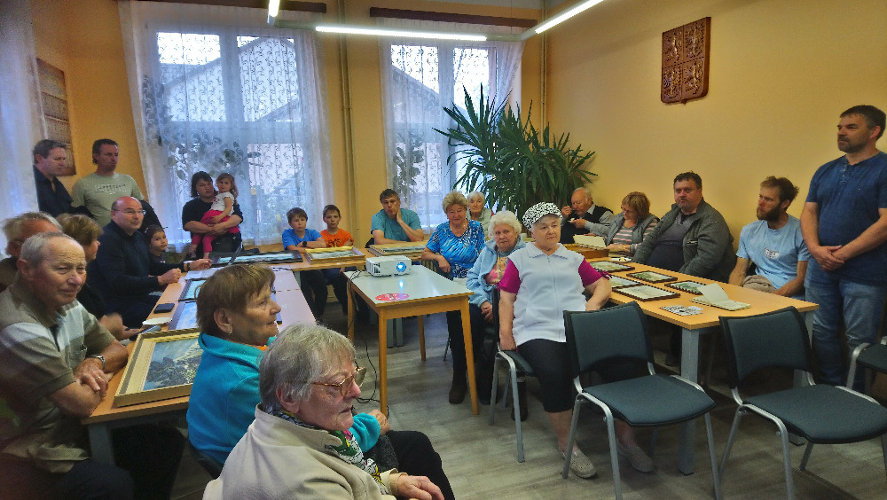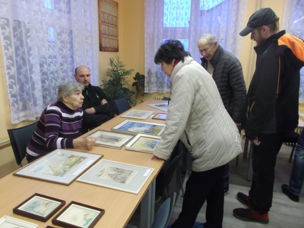 2. posezení s historií pořádané paní Alenou Štěpánovou ve spolupráci s obecním úřadem a knihovnou - vernisáž obrazů Břetislava Bursy a historie pošty.