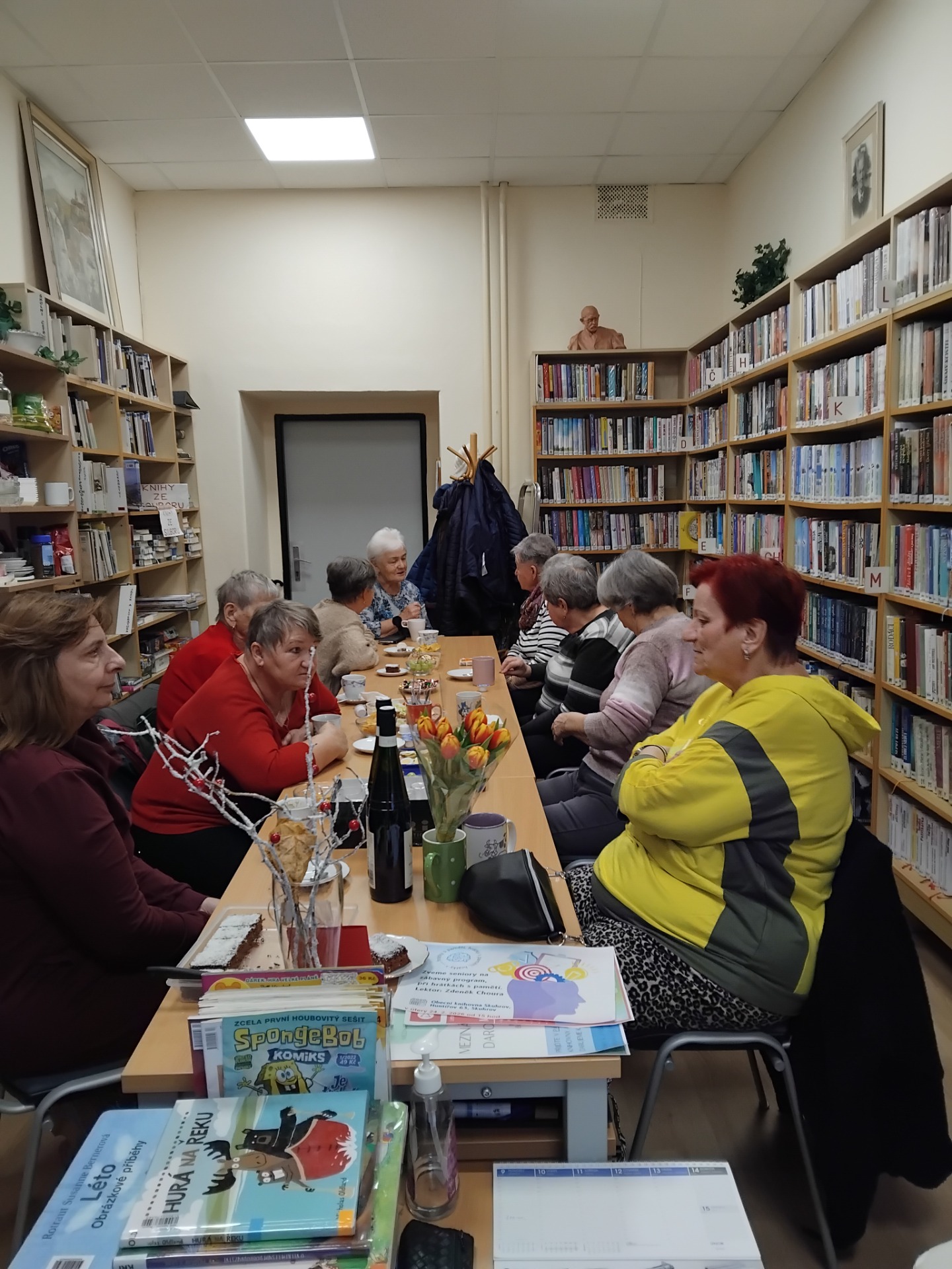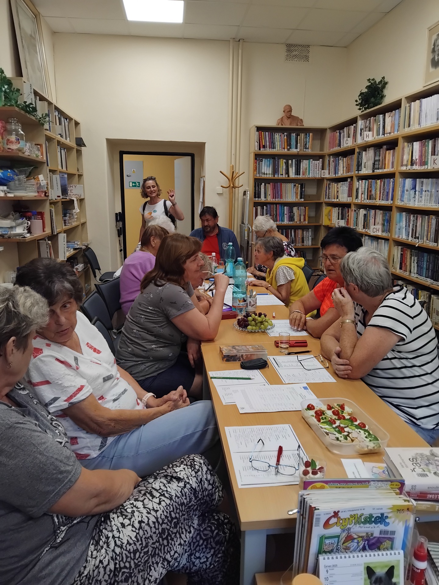 Další komunitní odpolední setkání se konalo ve skuhrovské knihovně 13. 5. Sešlo se na něm sedm účastnic (+ 1 knihovnice), probralo se, co je nového, kam se kdo chystá, a trošku jsme oslavili čerstvého pravnoučka jedné ze zúčastněných dam. Atmosféra byla pohodová a příjemná, jako ostatně pokaždé, těšíme se na příští setkání v úterý 17. června, které bude navazovat na Hrátky s pamětí.